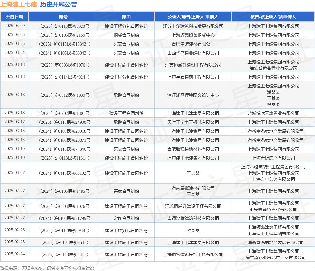 本站消息,根据天眼查APP显示,近日公布了一则上海建工七建集团有限公司作为原告/上诉人的开庭公告,详细内容如下: